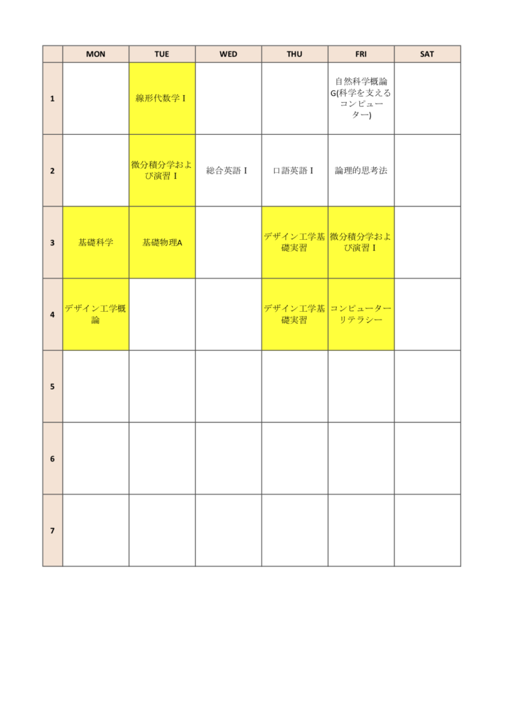 企画局3年の先輩が1年生のとき(2018年前期)に組んだ履修となります。