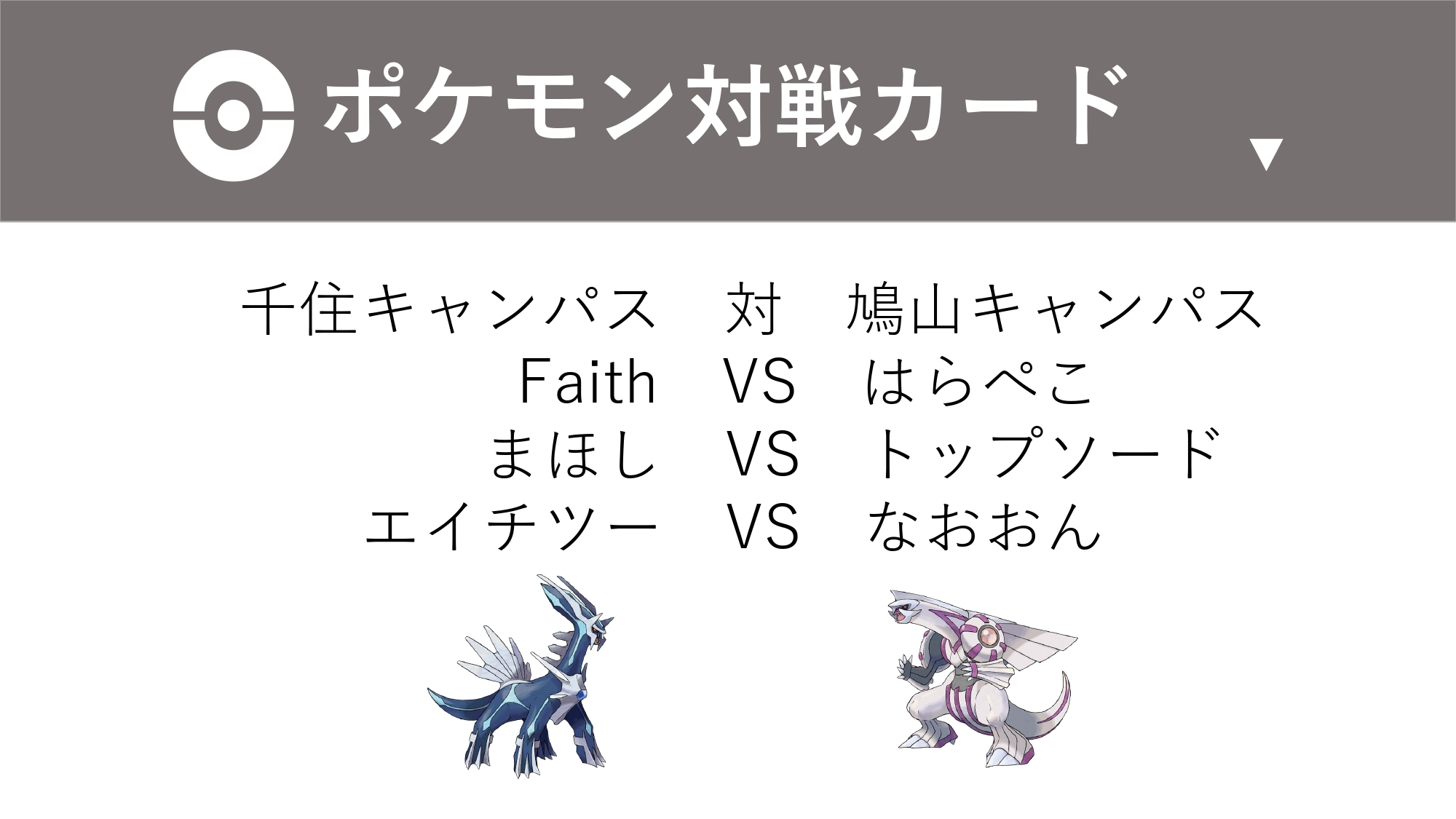 各キャンパスの代表3名が1名づつポケモンバトルで争います!
